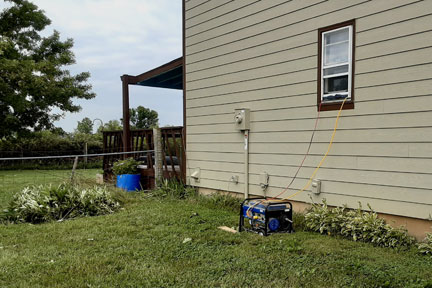 In June 2021 there was a BIG STORM. The winds came out of the east (unusual for June since the winds are primarily from the southwest) and just blasted through! We lost power and so did a lot of people in the area. We made our phone call and this time the automated service didn't give a time frame... "we are working on it." Never a good sign. After a couple of hours and another call with the same "we are working on it" message, the hubby decided to use the generator. We keep a few 5-gal tanks of gasoline in the garage (for mowers/the tractor) so we had fuel to get us started.