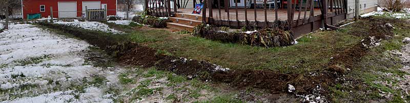 The digging started at the west fence (this is done going backward) and followed the route laid out by the Hubby and crew. |